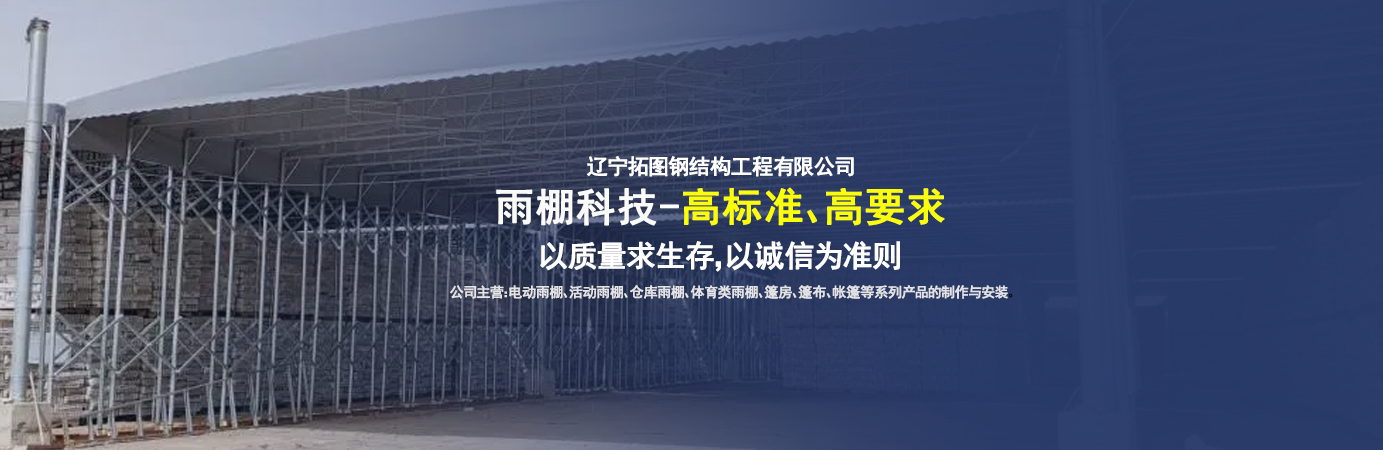 遼寧拓圖鋼結構工程有限公司是一家專業從事推拉篷設計、制作、安裝、使用、維修的綜合性公司。公司主營:電動雨棚、活動雨棚、倉庫雨棚、體育類雨棚、篷房、篷布、帳篷等系列產品的制作與安裝?! ?nbsp; 遼寧拓圖鋼結構工程有限公司堅持以市場為導向,以科技創新為動力,以質量求生存,以誠信為準則,倡導求實、進取、創新的企業精神。“科學的管理、嚴謹的設計、 的制作安裝、嚴格的質量檢測、良好的后期服務成就企業的信譽,為您提供優質服務。    遼寧拓圖鋼結構工程有限公司傾力于開發應用三維空間結構與新材料的結合,將廣告藝術視覺表現形式與張力膜材科學的結合,推出多彩推拉蓬,依靠先進的科學技術,將推拉蓬建筑表現形式無限延伸,立志走在建筑科學的前沿,引導建筑時尚潮流,我們的目標是使推拉蓬建筑在中國發展壯大?! ?nbsp; 遼寧拓圖鋼結構工程有限公司憑著極強的事業熱情和豐富的專業經驗以“勤勉進取、銳意創新、至誠至信”的精神使公司得到迅速健康發展,業務范圍遍及全國??茖W的管理、嚴謹的設計、高標準的制作安裝流程,嚴格把控產品質量,熱誠的售后服務是企業競爭力的源泉?! ?nbsp; 遼寧拓圖鋼結構工程有限公司人愿以最誠摯的態度,歡迎廣大客戶的蒞臨與溝通!愿為市場提供優...